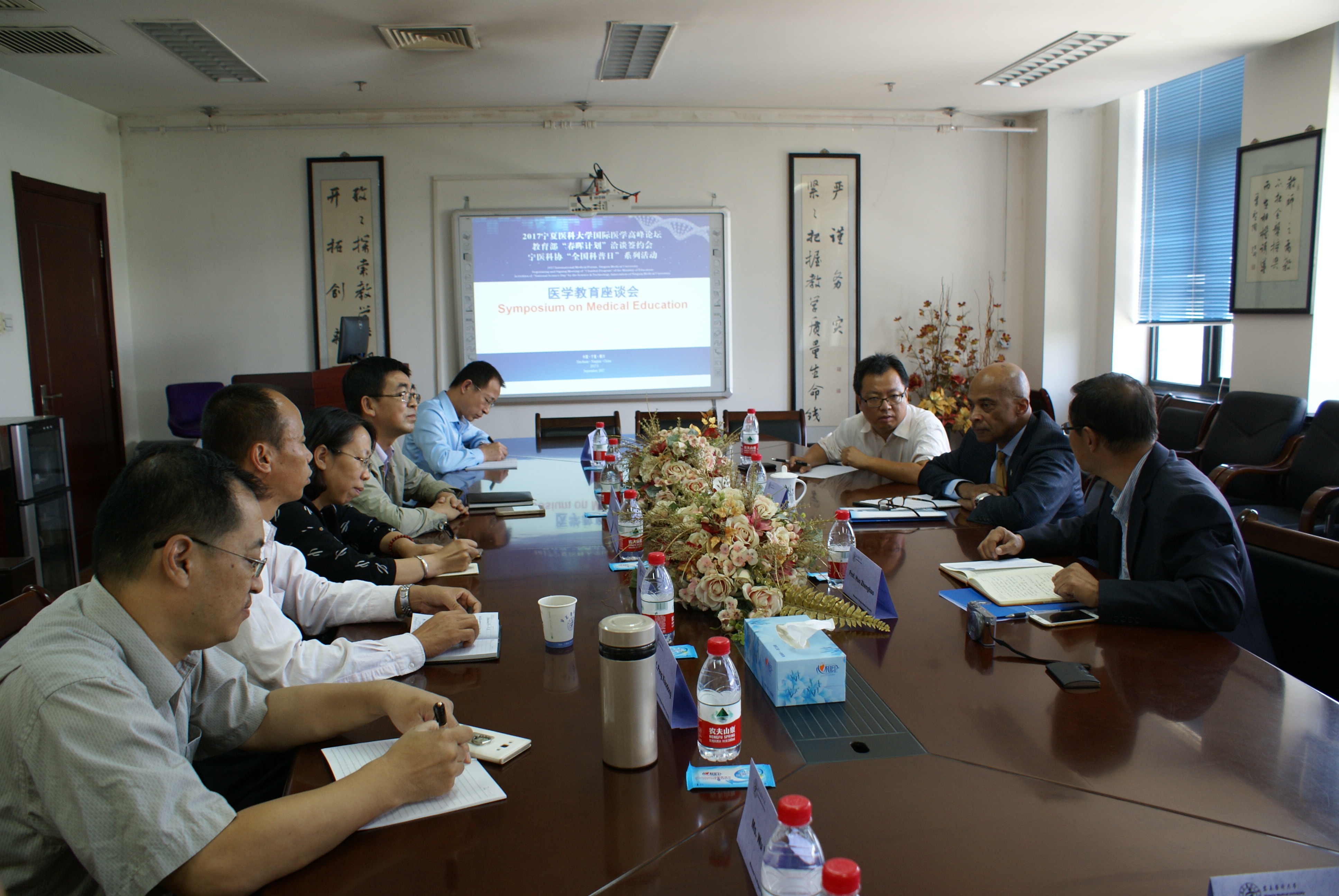 9月20日下午,在正德楼三楼教务处会议,美国北卡拉罗纳中央大学副校长卡尔顿·威尔逊教授与太阳成各学院(部)教师代表、教务处、教师发展中心等人员进行了座谈。座谈会上,围绕两校医学教育改革、专业建设、师资队伍建设、医学人才培养、考试与考核、教师教学质量评估等内容进行了深入交流和探讨。