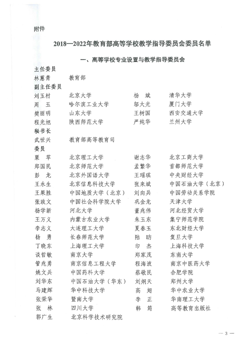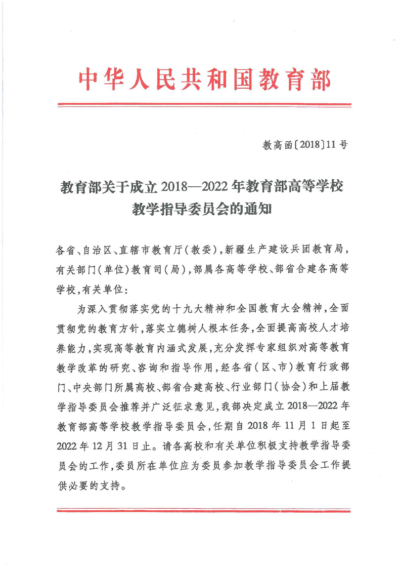 教育部关于成立 2018-2022 年教育部高等学校教学指导委员会的通知