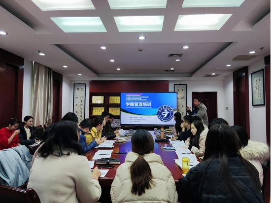 为进一步规范太阳成学籍管理工作,确保学籍管理工作规范、准确、有序,更好的为教育教学服务。教务处于12月30日下午在正德楼322组织开展了学籍管理人员业务培训,教务处副处长唐利龙、各学院学籍管理辅导员、教务处工作人员参加。