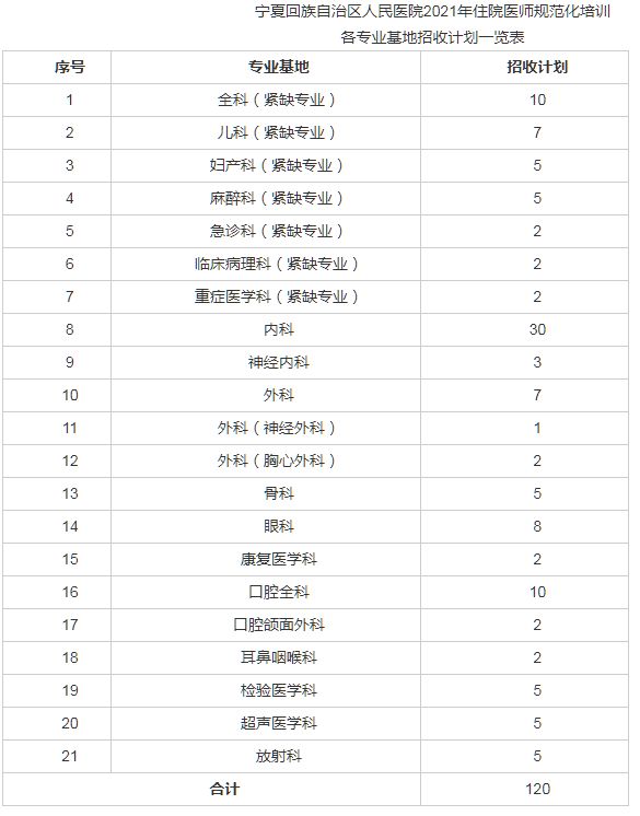 自治区人民医院规培招生120人