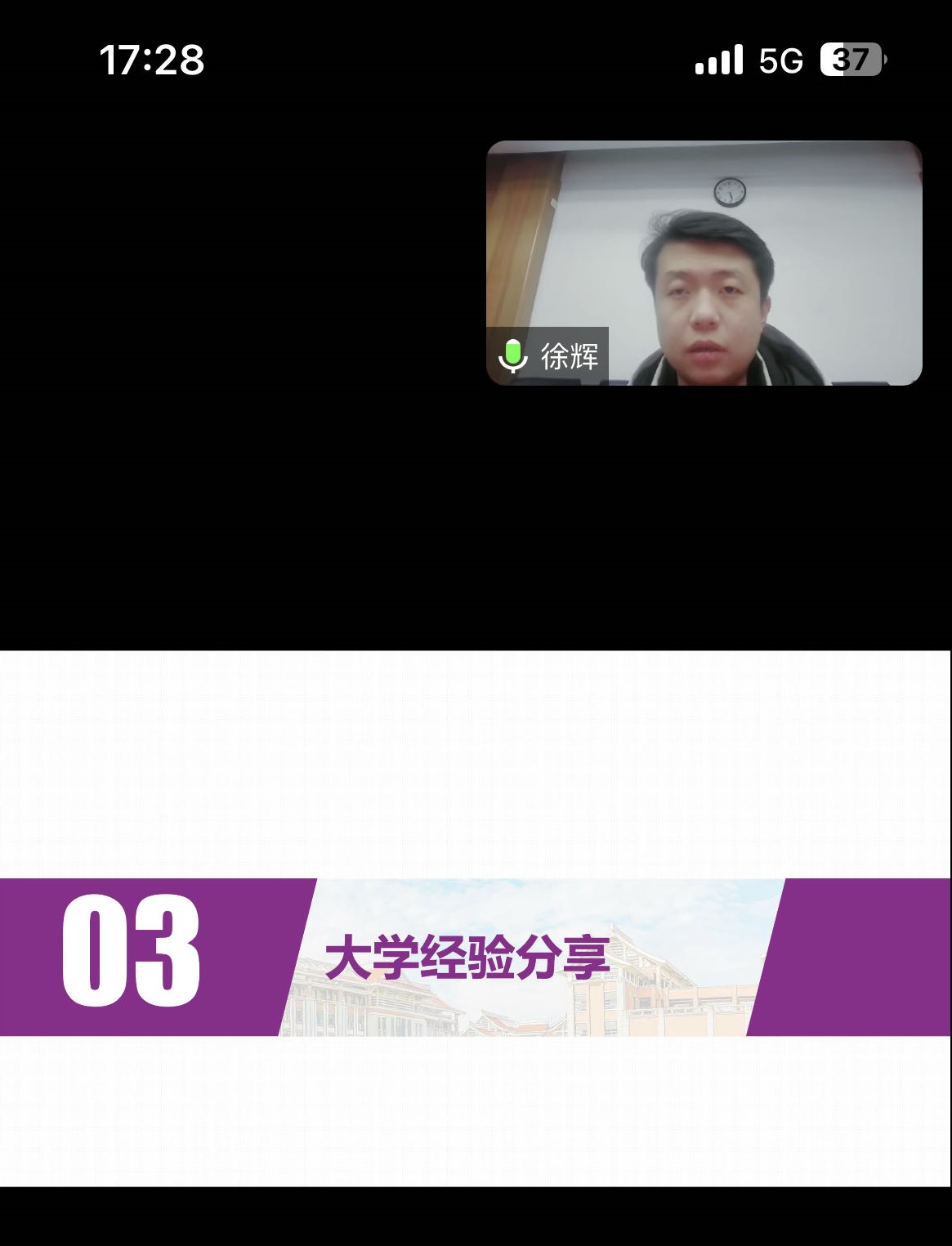 为进一步加强学院学风建设,帮助同学们更好地规划大学生活,找准自身定位,科学合理地做好大学期间的学业规划,12月24日下午,检验学院邀请全国青联副主席、全国学联主席、清华大学徐辉博士在线上为学院全体学生开展学业规划指导讲座。纪文武副书记主持了会议。