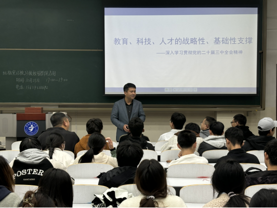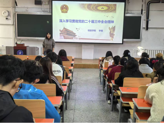 党的二十届三中全会是在以中国式现代化全面推进强国建设、民族复兴伟业的关键时期召开的一次十分重要的会议。全会召开以来,检验学院上下迅速掀起学习宣传贯彻党的二十届三中全会精神热潮,学院团委积极响应学校要求,邀请联系班级(团支部)的处级干部进班级开展宣讲,组织广大团员青年深入学习宣传党的二十届三中全会精神。