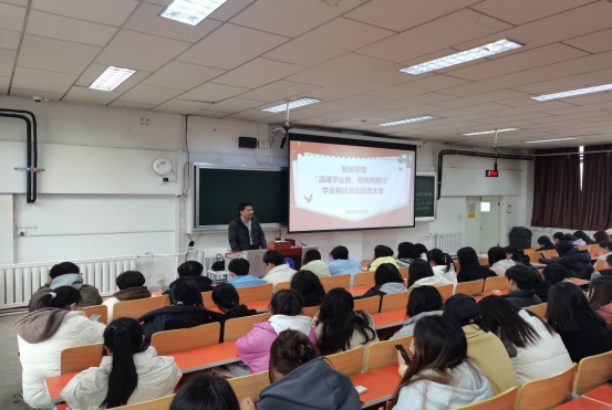 3月2日,检验学院在双怡校区教学楼20大教室举办了“温暖学业路,帮扶共前行”学业帮扶动员大会。会议由学生工作办公室主任陈媛主持,党委副书记纪文武、辅导员刘莉和300余名学生参加了动员会。会上,解读了学院关于学业帮扶活动的方案,对帮扶对象、帮扶人员、帮扶方式做了说明。鼓励班级学优生辅助学困生,高年级学生帮助低年级学生;针对四六级考试、专升本考试、考研,定期开展讲座和经验交流,进行学习打卡和进度跟踪,营造...