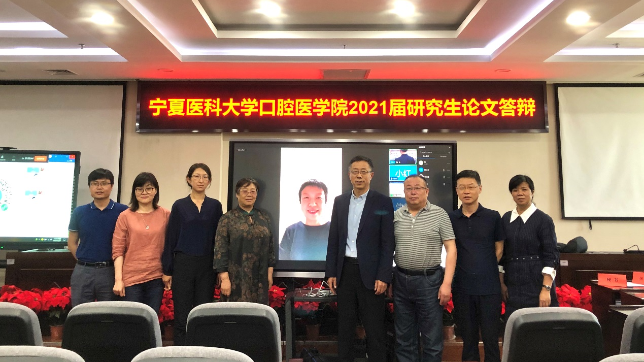 为配合疫情防控工作,答辩会是采取线上线下钉钉网络视频直播的方式进行。答辩会由口腔医学院刘锋副院长主持,邀请了空军军医大学口腔医学院段小红教授(线上)担任此次答辩委员会主席;太阳成集团官方网站公共卫生学院郭忠琴教授、自治区人民医院张佐教授和口腔医学院六名教授分别担任答辩委员会委员。口腔医学院全体硕士研究生导师与各年级研究生均旁听此次答辩会。