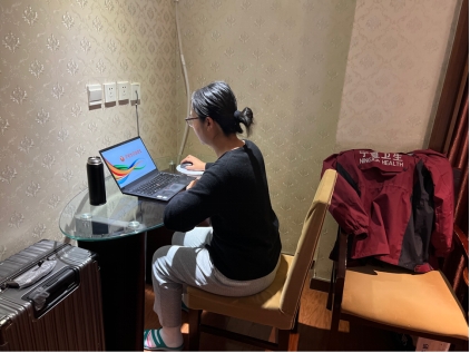 口腔医学院的杨长怡老师便是其中一员。她既是学院教学办主任,又是医院医疗一线医生。深夜,当她接到支援其他地区的通知之后,便简单收拾随身物品,第一时间奔赴疫情防控第一线,进行核酸采集工作。同时,杨老师也担任着重要的教学任务,在与各班级协商上课时间之后,杨老师仍然不顾疲累,打起精神准时、保质、保量的开展线上教学工作,为大家讲授《牙周病学》的相关课程内容,丝毫没有因为繁重的核酸采集工作而延误给同学们的授课。