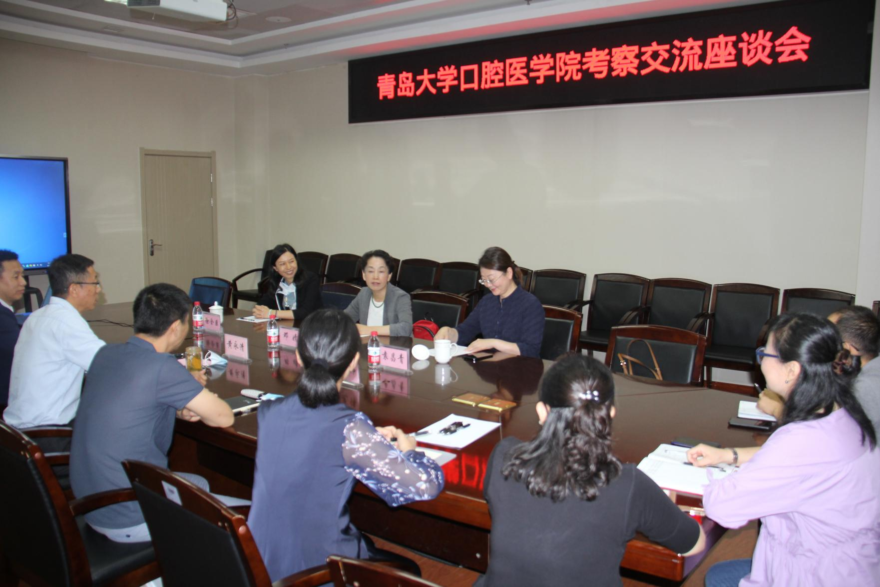 9月29-30日,青岛大学口腔医学院邓婧一行3人来我院考察交流。在十二楼第一会议室举行交流座谈会,院长黄永清、书记贾立勤、副院长乔光伟及相关职能部门负责人参加座谈会。