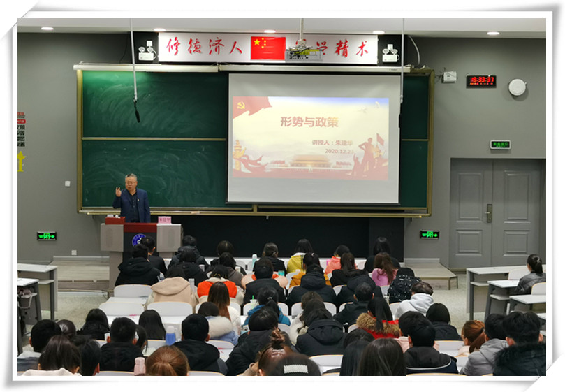 12月23日下午6:30,学校党委副书记朱建华以“把握好、践行好党的十九届五中全会精神的时代特点和重要意义”为题,在雁湖校区应谦教学楼101教室为口腔医学院师生作形势与政策专题报告。学院党委书记、副书记、辅导员以及19、20级所有学生150余人聆听了报告。