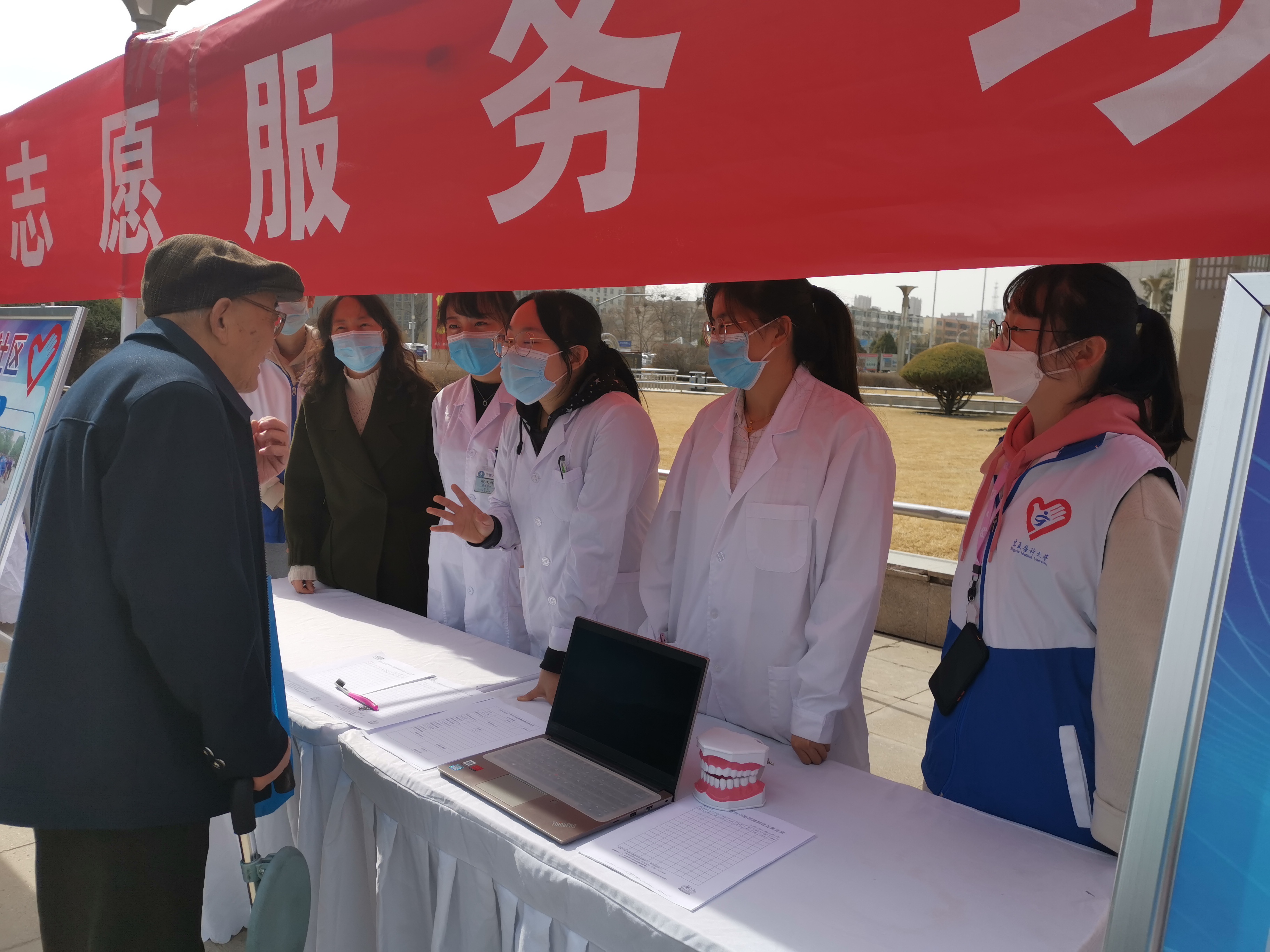 启动仪式上表彰了宁夏荣获全国全区学雷锋志愿服务活动先进集体和个人,宣读了志愿者招募令,总结了青年志愿服务工作,对2021年全区志愿服务工作进行了部署。仪式后,领导们对志愿服务获奖项目展位进行参观了解,口腔医学院的志愿者为领导们详细讲解了金奖项目“灵心慧齿 牙伢口腔保健科普儿童之家”,并观看了项目宣传视频。了解项目之后各位领导对口腔医学院学生能够将专业特长融入志愿活动的想法表示赞扬,并鼓励志愿者们继续坚持,争取服务更多人群。活动期间,志愿者们也向过路的人们进行常规口腔卫生宣教,并为前来咨询口腔相关疾病的人们答疑解惑。