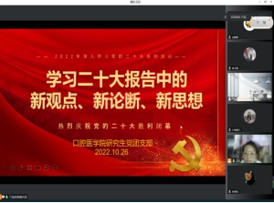 永远跟党走的信心和决心,2022年10月26日,我院研究生党团支部开展“学习二十大,永远跟党走,奋进新征程”主题线上党团日活动。