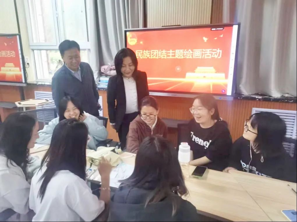 活动中,团支部书记王依萍从习近平总书记关于民族团结的重要论述、新时代大学生铸牢中华民族共同体意识的必要性等方面开展主题团课学习,梁秋隆同学领学《求是》杂志发表的习近平总书记重要文章《铸牢中华民族共同体意识 推进新时代党的民族工作高质量发展》,使同学们进一步认识到维护国家统一、民族团结的重要作用。随后,在民族团结主题绘画环节,师生共分为3组,大家协团结协作,用画笔展现中华民族多元一体的魅力与团结奋进精神。