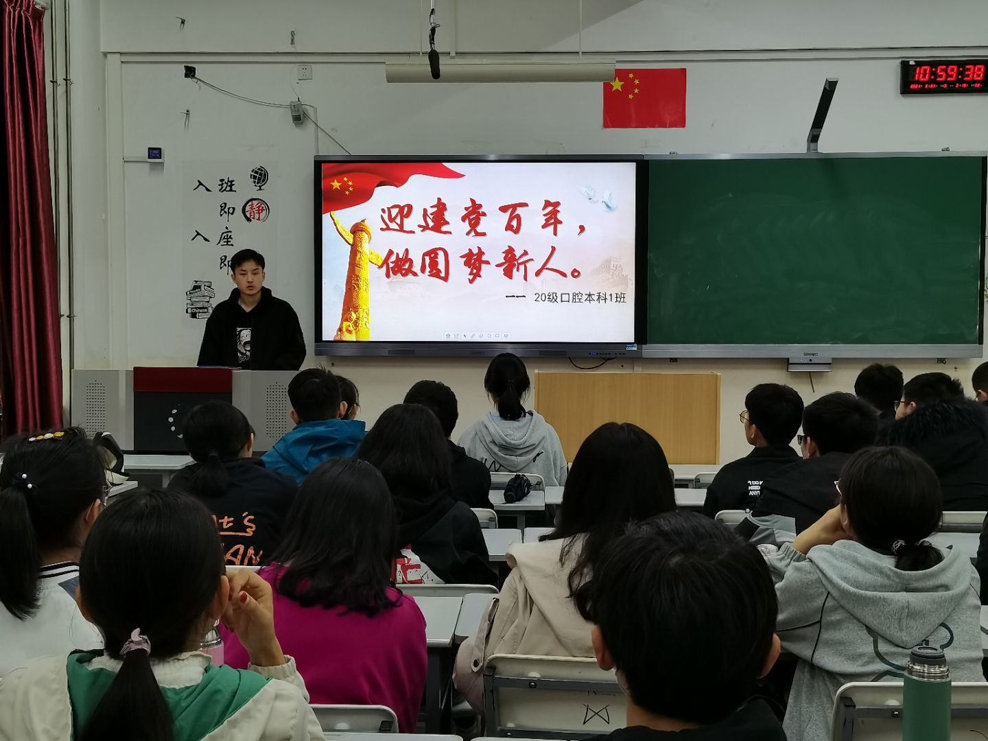 2020级口腔本科1班以全体合唱《没有共产党就没有新中国》为开端,设置党史有奖竞答、身边故事分享会、观看《一百堂党史课革命理想高于天》等环节,积极展开党史学习教育。