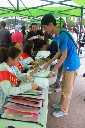在新生接待站,学院老师和同学们一起迎接2014级新生的到来,通过“老生带新生,服务一帮一”接送,帮助每一位新生顺利办理完入学手续并熟悉新的校园环境。尽管当天下着小雨,但是大家的热情却丝毫没有受到天气的影响。同学们的主动、热情、细致、周到的服务给新同学和家长都留下了深刻的印象。