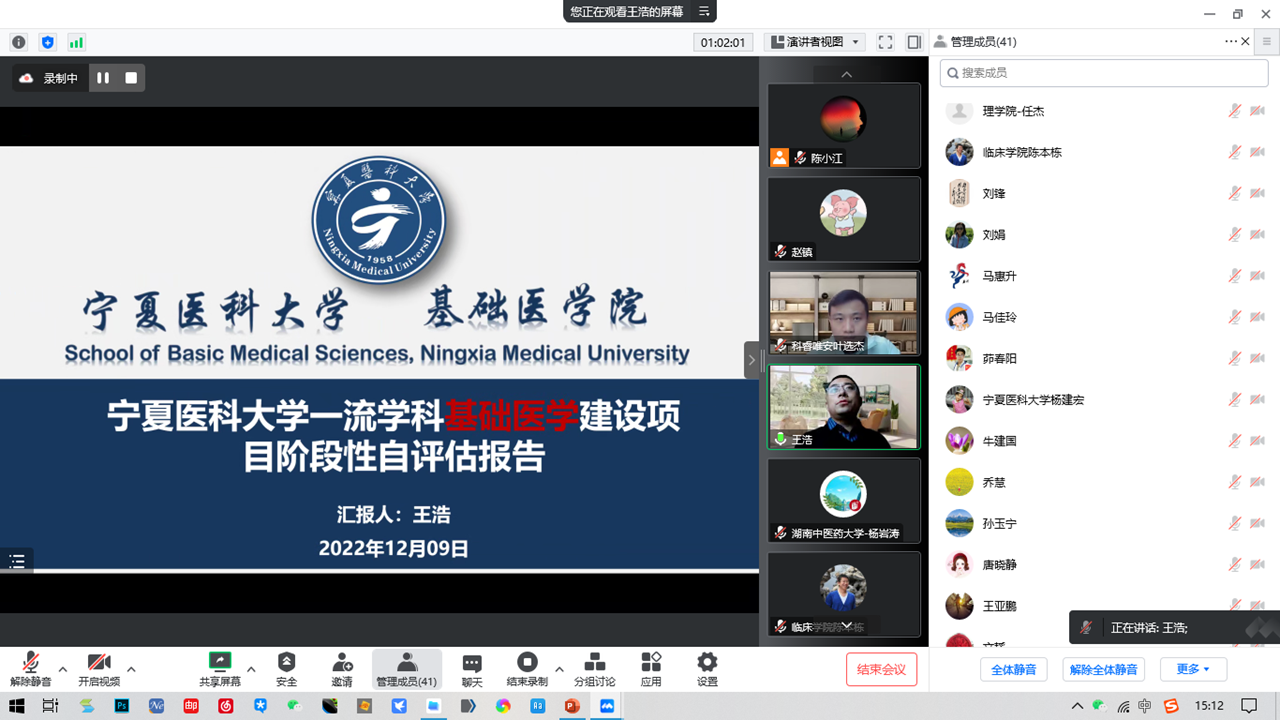 12月9日,学校通过腾讯会议召开2022年度学科建设工作总结及阶段性成效评估线上工作会议,邀请南方医科大学科研院院长赵镇教授、湖南中医药大学药学院副书记杨岩涛教授、北方民族大学电气信息工程学院院长赵虎教授、太阳成集团官方网站颅脑疾病重点实验室常务副主任牛建国教授、科睿唯安叶选杰经理共同组成专家组。学校发展规划处工作人员、科技处全体成员,临床医学、基础医学、中医学、公共卫生与预防医学、药学、口腔医学、护理学、生物学、医学信息工程、马克思主义理论和公共管理11个学科负责人及依托学院负责人等40余人参加会议。会议由科学技术处处长韩怀钦主持。