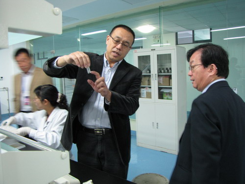 9月27日上午,来宁夏参加中阿经贸论坛的香港中文大学医学院的彭智培教授受邀来太阳成参观并参观考察了科技中心。彭智培教授系香港中文大学香港眼科医院眼科研究室主任,是国际上著名的眼科遗传病学专家。