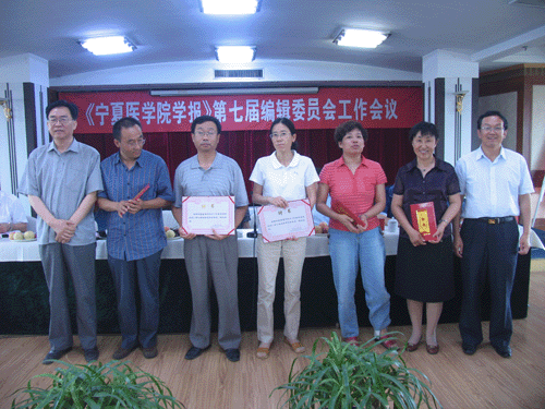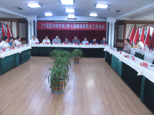 《宁夏医学院学报学报》第七次编委会工作会议于2007年7月7日在工会大厦隆重召开。会议由李正直副院长主持。出席会议的有《宁夏医学院学报》第2届编委会主任、宁夏医学院名誉院长陈树兰教授、宁夏卫生厅刘天锡厅长、卫生部老年医学研究所医学遗传学研究室主任杨泽教授、宁夏新闻出版局期刊出版处盛学忠处长、宁夏医学会蒋兴国秘书长及60多位历届学报编委会委员和审稿专家,《宁夏医学杂志》编辑部、宁夏医学院部分附属医院和教学实习医院等部门代表也应邀参加了会议。