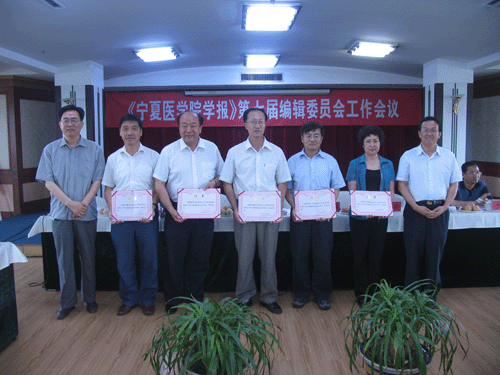 编委会主任孔繁元教授做了《宁夏医学院学报》第六届编委会工作总结和第七届编委会工作安排的报告,在充分肯定第六届编委会工作的同时,对第七届编委提出了新的要求。李正直副院长代表学院宣读了宁医院发[2007]95号《宁夏医学院学报》第七届编委聘任文件及编委名单,调整后的《宁夏医学院学报》第七届编辑委员会成员共61人,其中外聘5位国内知名专家担任本届编委会委员;孙涛主编、孔繁元主任为卸任编委和新一届编委分别颁发了荣誉证书和聘书。大会审议并通过了《宁夏医学院学报》审稿专家人选。
