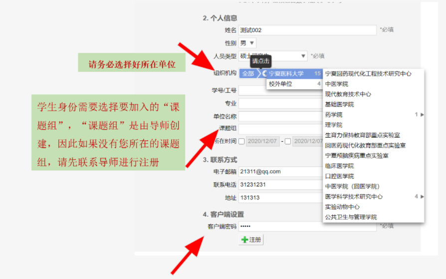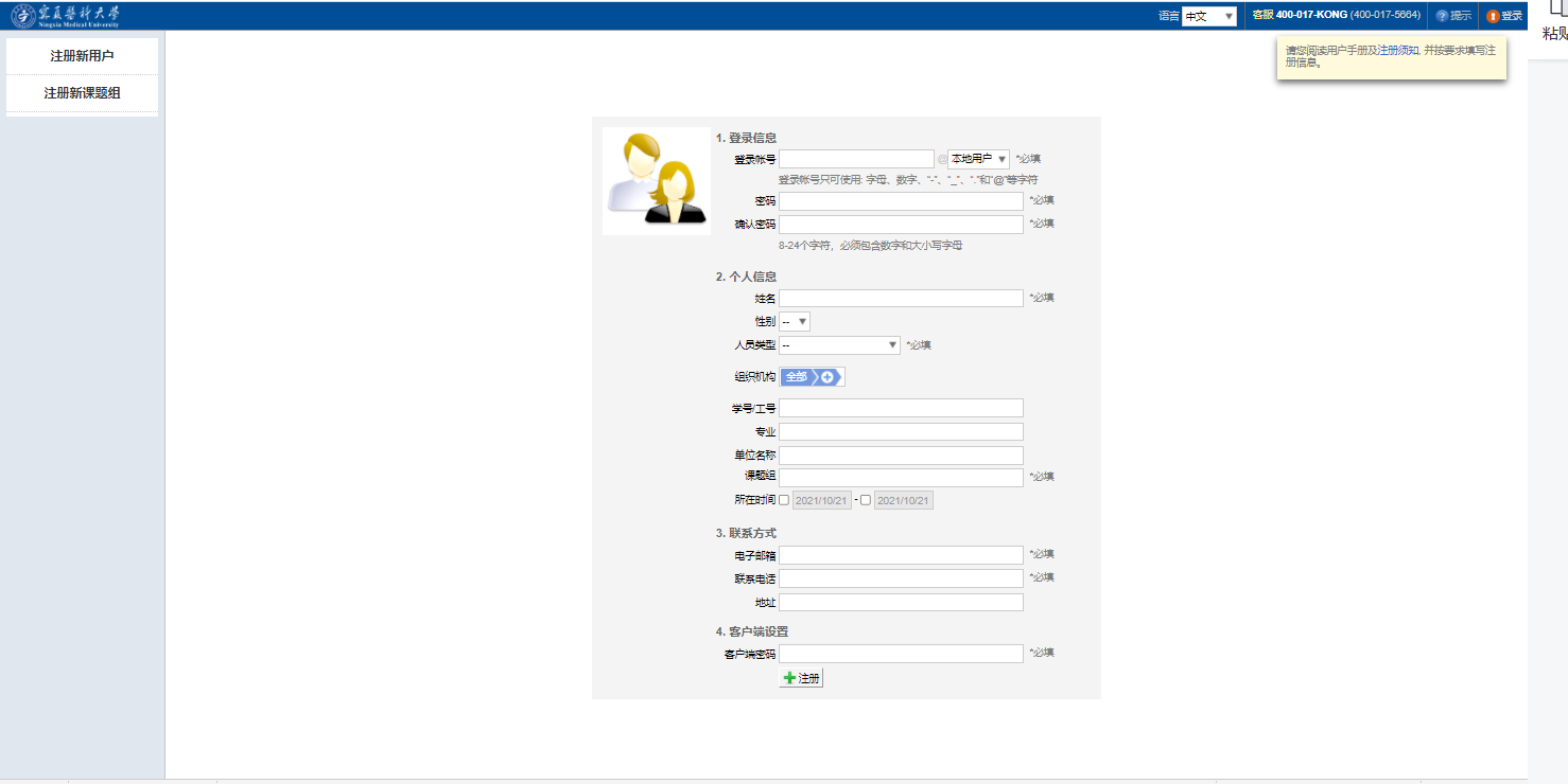 第三步 点击注册之后,请联系课题组导师进行激活确认,激活通过之后便可以进入系统。