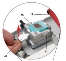 • 给仪器上润滑油: -快速夹紧装置的夹锁 -刀架SE和SN -护刀器的滑动面 -高度调节的旋转螺母 • 通用包埋盒样品夹: -包埋盒夹具轴和平板的螺旋弹簧 |