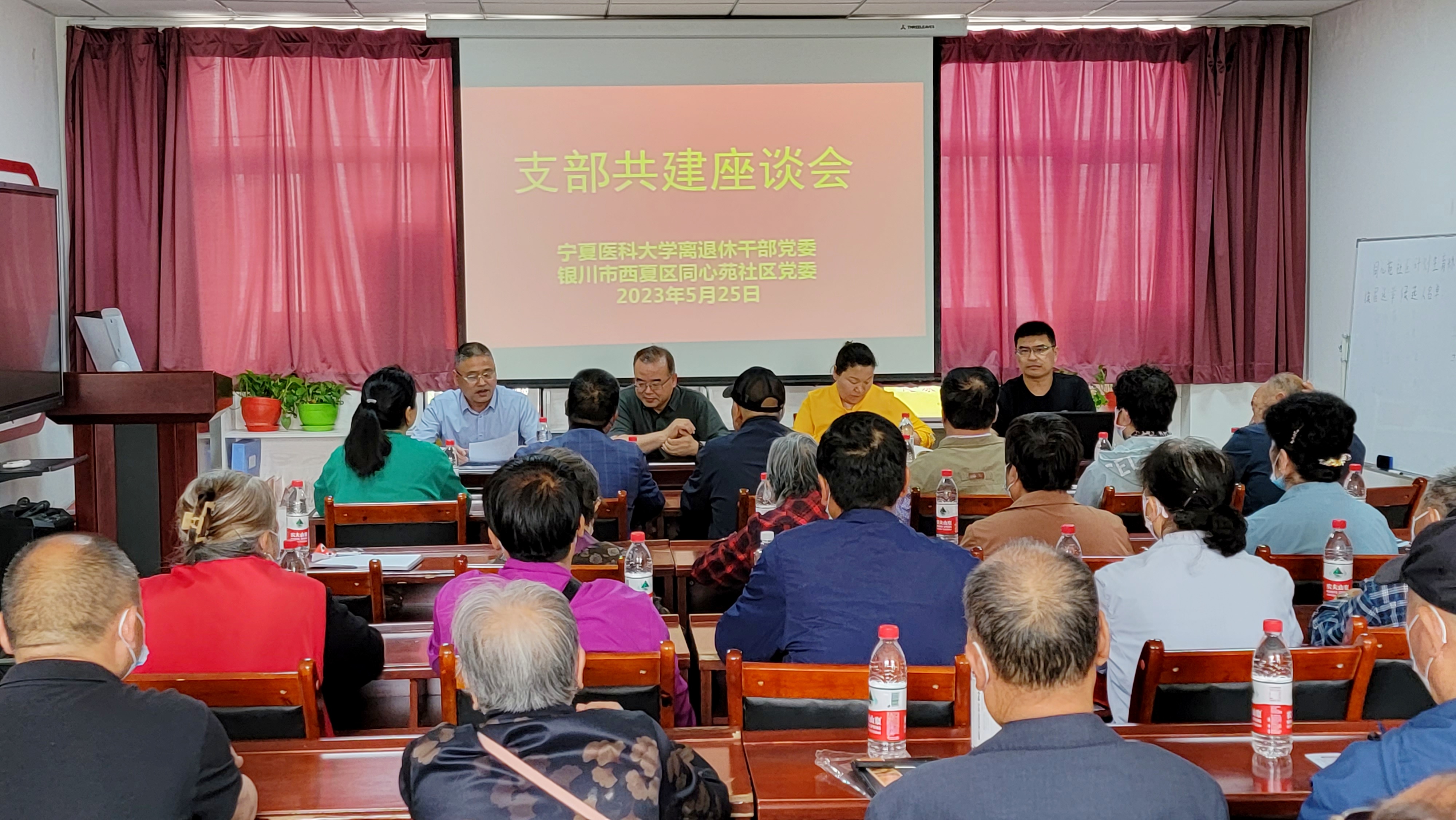 5月25日,太阳成集团官方网站离退休干部党委与西夏区同心苑社区党委在同心苑社区开展支部共建,举办了座谈会、专题党课、观摩学习、志愿服务等活动。