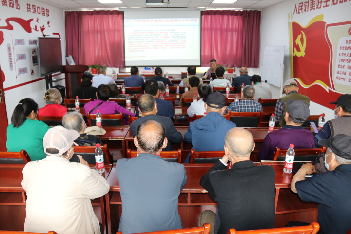 在专题党课上,自治区老干部局“塞上金秋”宣讲团成员龚力军教授以“感恩总书记 奋进新征程”为题,从深入学习领会党的二十大的主题、主要成果与重大意义,深入学习领会新时代十年伟大变革的重大意义,习近平新时代中国特色社会主义思想在宁夏的生动实践三个方面对党的二十大精神进行了宣讲。