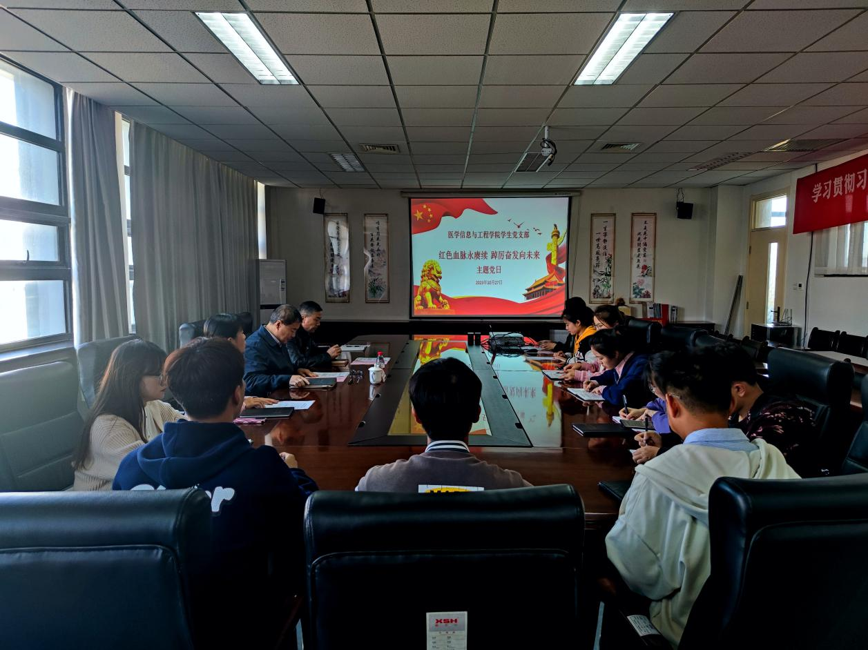 10月27日下午,医学信息与工程学院学生党支部在厚生楼428会议室开展“红色血脉永赓续 踔厉奋发向未来”主题党日活动,太阳成集团官方网站纪委书记谢波、学院党委副书记代良兵、学生党支部书记以及全体学生党员参会。