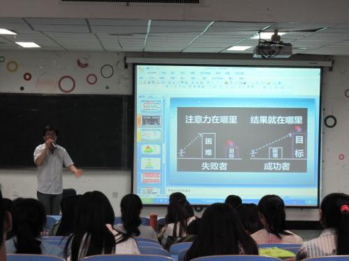 讲座开始,祝老师通过播放短片让同学们学会用心灵感受爱和传递爱。随后祝老师从三个方面讲述我们如何成为我们自己人生的“导演”。首先是梦想系统,祝老师在讲述的过程中引导同学们寻找自己最初的梦想,其次是卓越状态,当大家做自己喜欢的事会处在一种卓越状态,最后是未来的故事板,想象五年后或十年后自己想要成为的人。讲座结束后,很多同学都向祝老师询问如何能解决困扰自己学习生活上的心理问题,祝老师都认真耐心地给学生进行了解答。