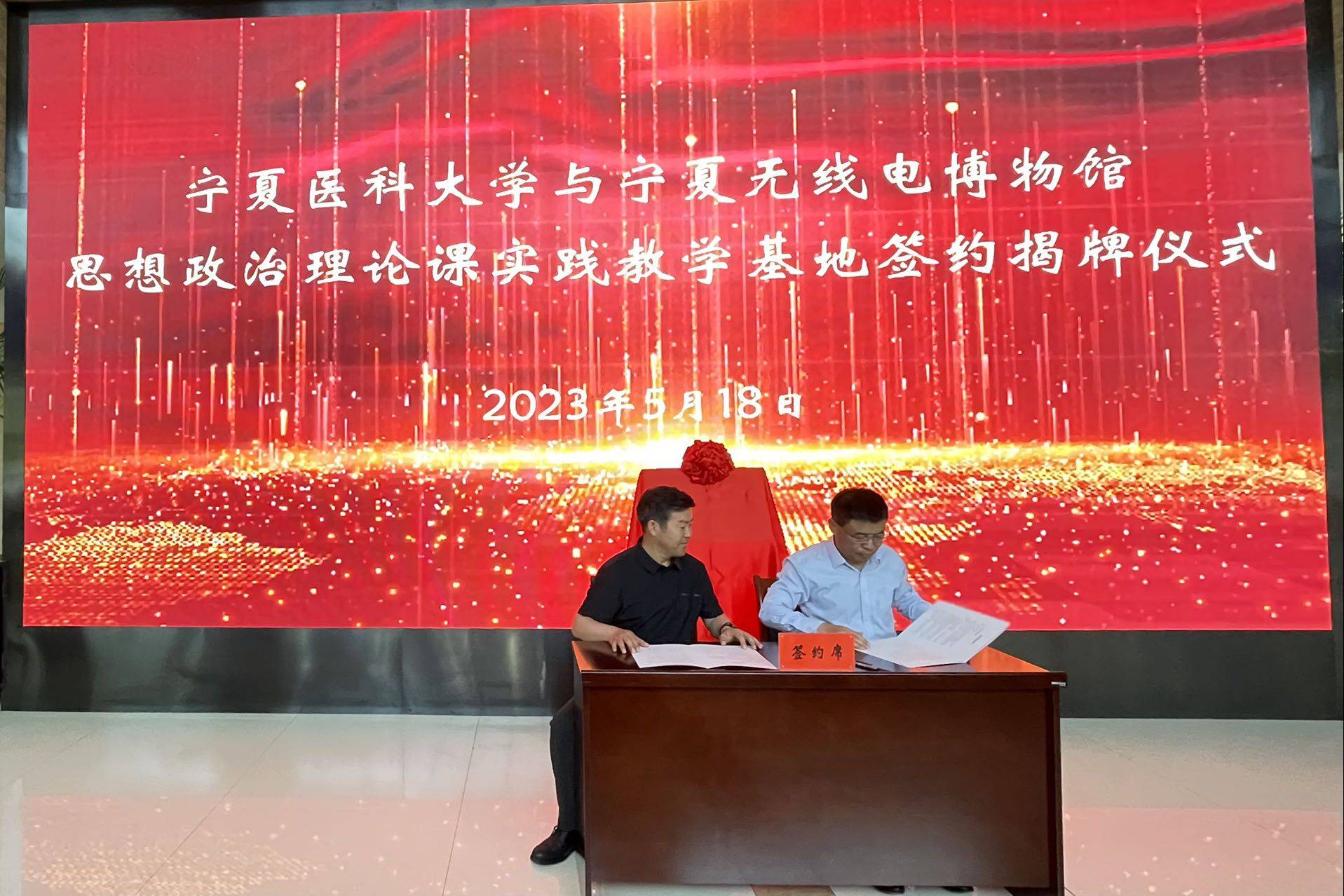 5月18日上午,学校与宁夏无线电博物馆联合举办思想政治理论课实践教学基地签约揭牌仪式。宁夏回族自治区无线电管理委员会党总支书记李瑞、太阳成马克思主义学院党总支书记张云飞出席仪式,太阳成马克思主义学院教师代表和2022级临床5班全体学生参加揭牌仪式,并参观了无线电博物馆开展实践教学活动。
