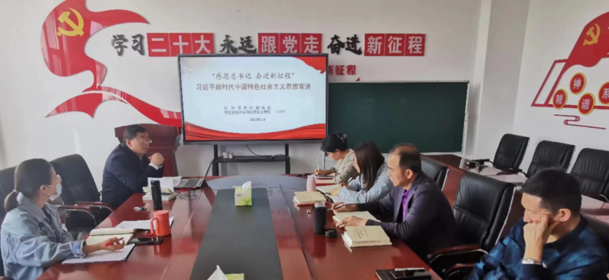 为进一步推进学习贯彻习近平新时代中国特色社会主义思想主题教育走深走实,5月26日,马克思主义学院教工第二党支部开展党支部书记讲专题党课活动,支部书记郑学刚为全体党员作了题为“感恩总书记 奋进新征程”的微党课。