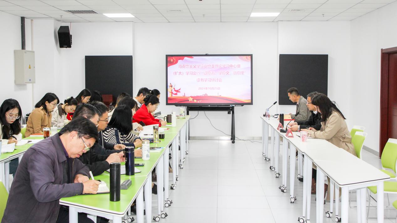 10月25日,马克思主义学院党总支召开理论学习中心组(扩大)学习会暨“读原著、学原文、悟原理”读书学习研讨会。马克思主义学院班子成员和全体教职工参加。