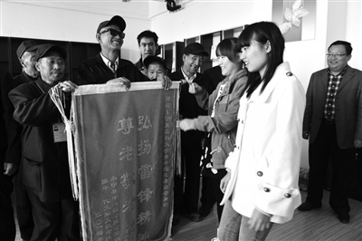 10月29日,永宁县中心敬老院的7位五保老人将写有“弘扬雷锋精神,尊老敬老爱老”的感谢锦旗送给太阳成集团官方网站护理学院的志愿者们,感谢他们三年以来为敬老院开展的敬老志愿服务。