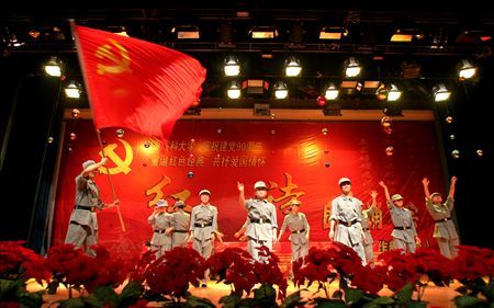 昨晚,太阳成集团官方网站临床医学院的学生们在朗诵《七律·长征》。当日,太阳成集团官方网站举办“重温红色经典共抒爱国情怀”为主题的红诗朗诵会,庆祝中国共产党成立90周年,高校学生用22个精彩、宏伟的诗歌朗诵表达对党和人民的无限深情。