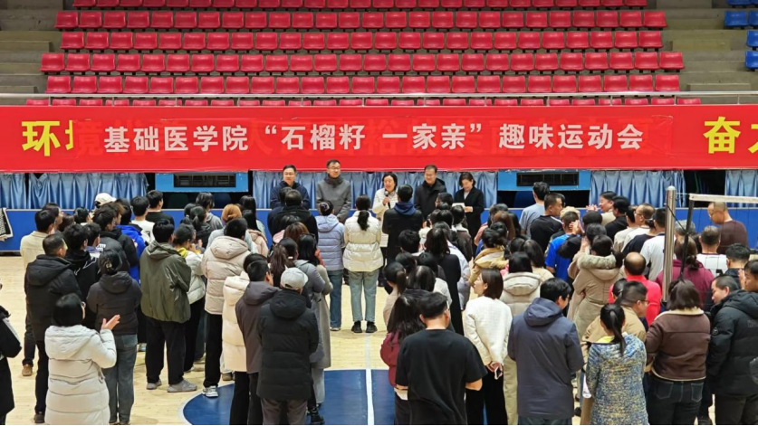12月6日下午,基础医学院举办的“石榴籽 一家亲”师生趣味运动会。学校党委副书记邓彦芳,统战部、工会负责人,基础医学院领导班子、教职工,2023级基础医学创新班全体学生参加。