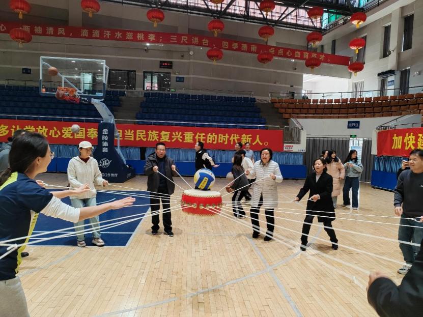本次比赛设有民族宗教政策知识抢答、共击同心鼓、循环投篮等3个团体项目及气排球等6个个人项目。民族宗教政策知识抢答环节,师生们凭借扎实的知识基础迅速作答,充分展现了他们的全情投入。共击同心鼓环节,师生们齐心协力的控制着力度和节奏,每一次成功地击球都彰显着团队协作的成果。循环投篮环节,师生们一字排开,依次进行接力投篮,篮球空心入网的刹那,大家共同击掌庆祝。