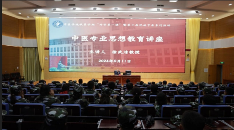 关工委成员徐武清、任力、赵海萍教授分别为入校新生开展“中医文化精髓”“医药学人才的培养与就业”“公共卫生医师——人民健康的守护者”等专业学习启蒙教育和职业规划创新教育,激发新生对所学专业的认知和热爱,帮助同学们坚定专业思想、毕生奉献医学事业。