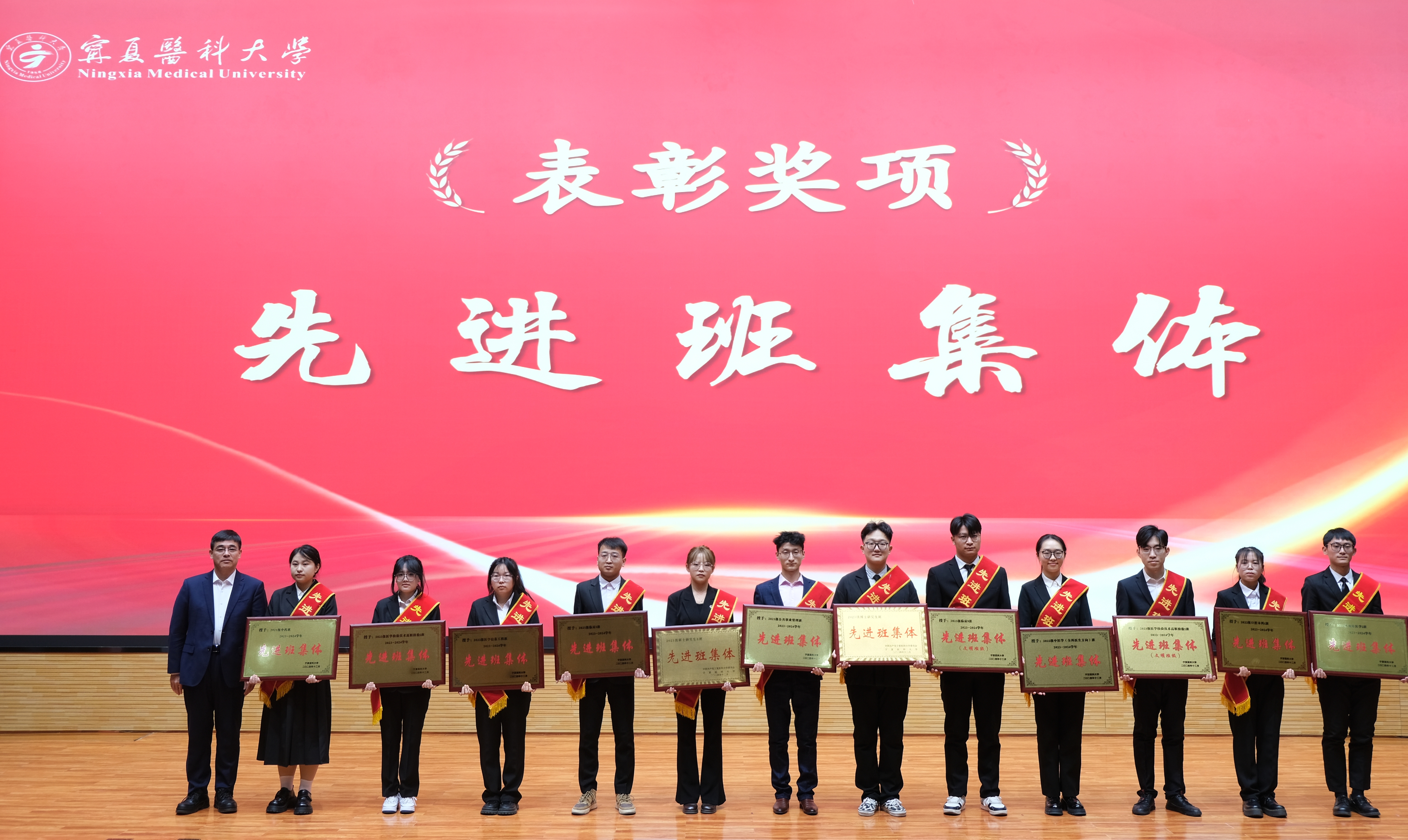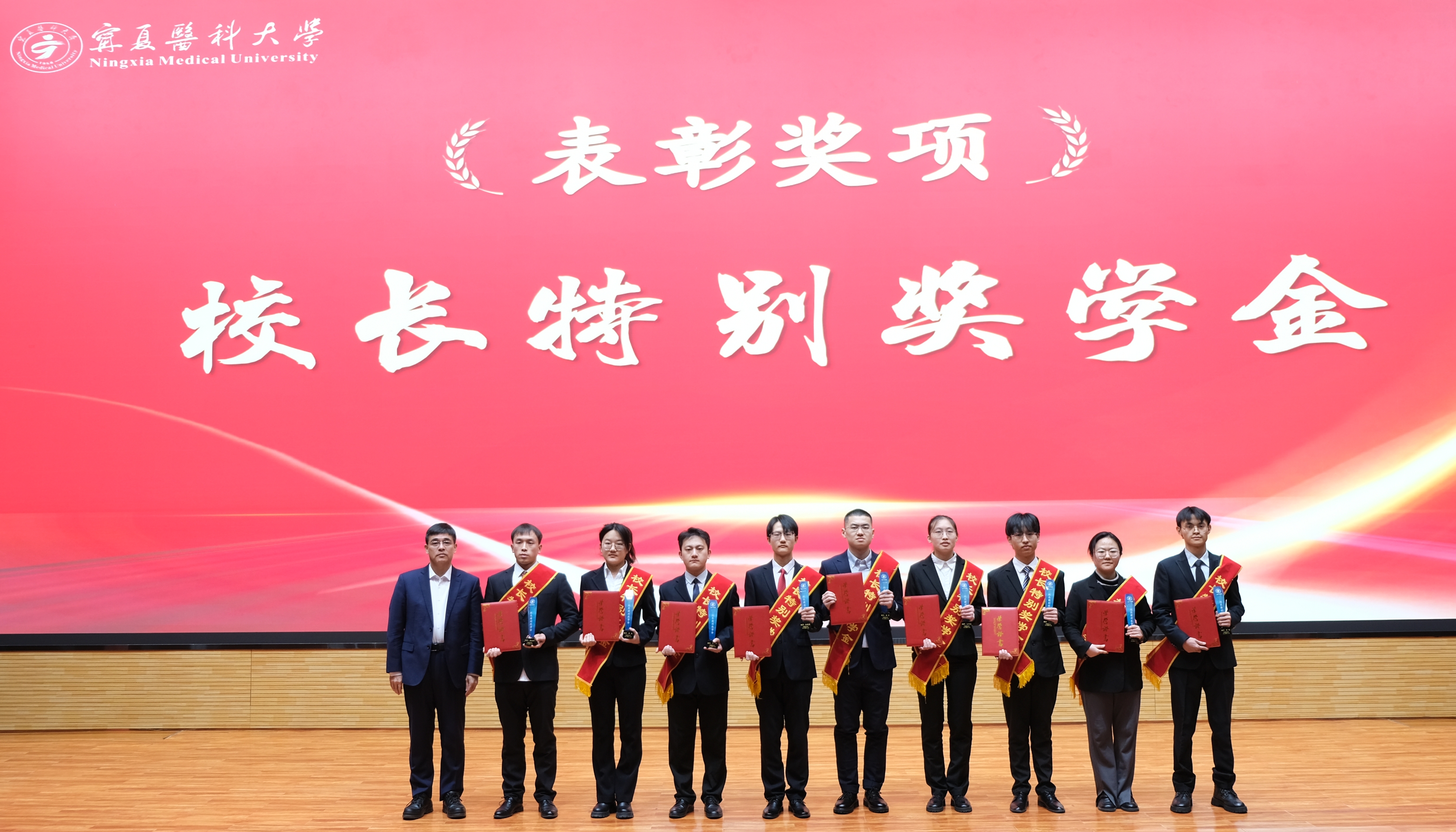 姜怡邓寄语全体受表彰学生,他讲到,2024年,全校上下一心,始终坚持以习近平新时代中国特色社会主义思想为指导,深入学习贯彻党的二十届三中全会和习近平总书记考察宁夏重要讲话精神,全面落实自治区党委十三届七次、八次、九次全会精神,并胜利召开了学校第三次党代会,一起按下了建设西部一流、国内知名、国际有影响、特色鲜明的应用研究型大学的“加速键”,为全力以赴推动学校高质量发展奋勇向前标明了航标。宁医学子通过勤奋学习、锐意进取,在创建民族团结进步示范班、学术论文发表、科创比赛、体育竞赛以及社会志愿服务等方面取得了优异成绩,全面展示了宁医学子的青春风采。
