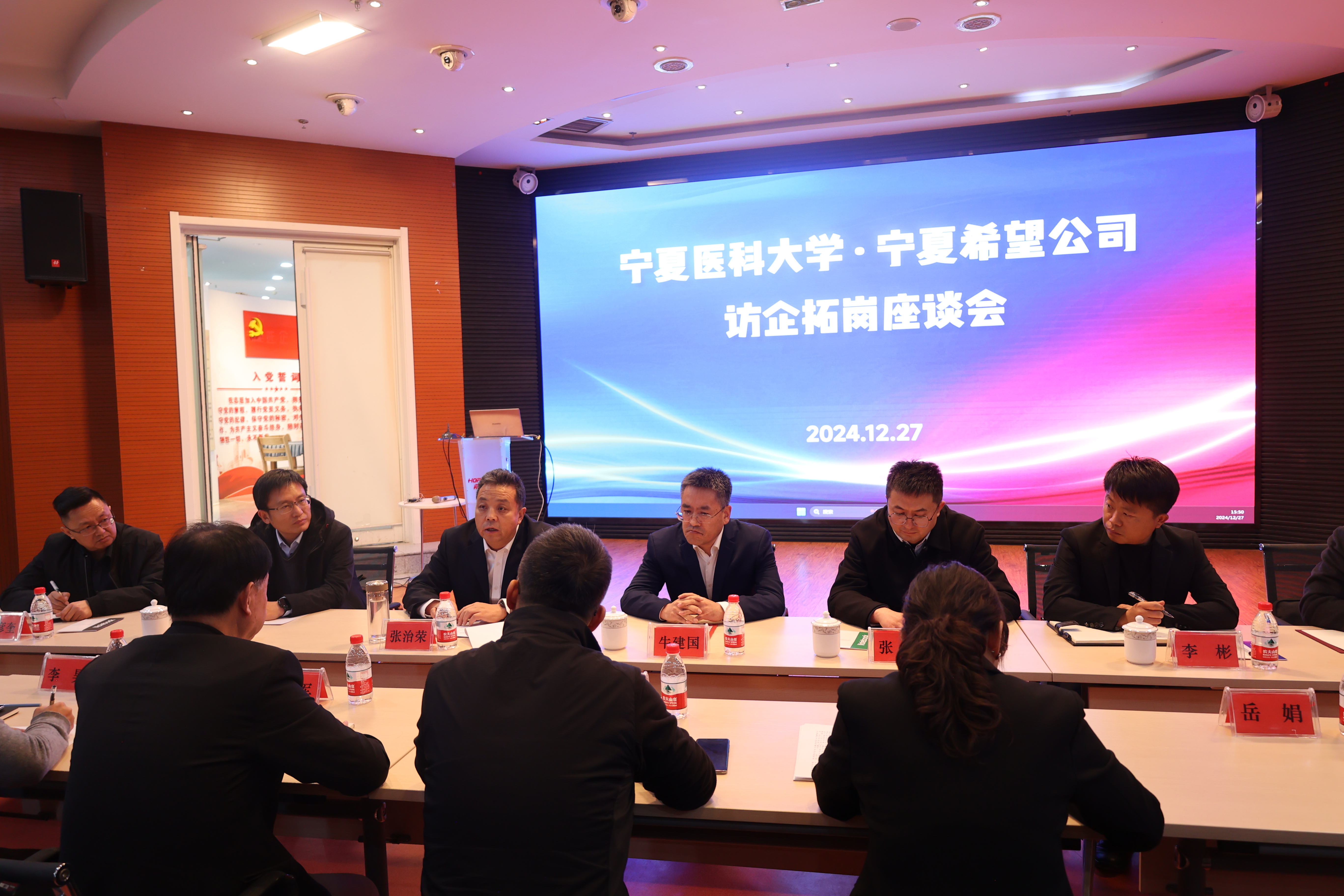 座谈会上,张治荣表示宁夏希望软件科技有限公司近年来发展迅速,产业规模持续扩大,社会影响力不断提升,为推动宁夏人工智能创新发展作出了重要贡献。他强调,开展访企拓岗是推进毕业生高质量充分就业的有力举措,通过实地走访考察和座谈交流,能够深入了解企业的实际用人需求,探索企业与高校之间合作的新模式、新路径,对培养符合国家战略需求和区域经济发展的高素质人才具有重要意义。希望双方以此次访企拓岗为契机,建立可持续、深层次的合作机制,在提高毕业生专业实践能力和就业竞争力的同时,不断拓展合作领域,共同助力推进学校医学信息相关专业建设。他表示,学校将与希望公司加强优势互补,推动资源共建共享,为双方高质量发展赋能增效,为“健康宁夏”建设和宁夏经济社会发展贡献力量。