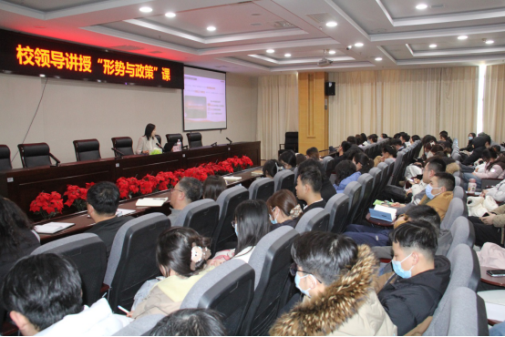 1月2日,学校党委常委、总医院党委书记刘娟在口腔医院十二楼第二会议室为口腔医学院学生讲授“形势与政策课”。