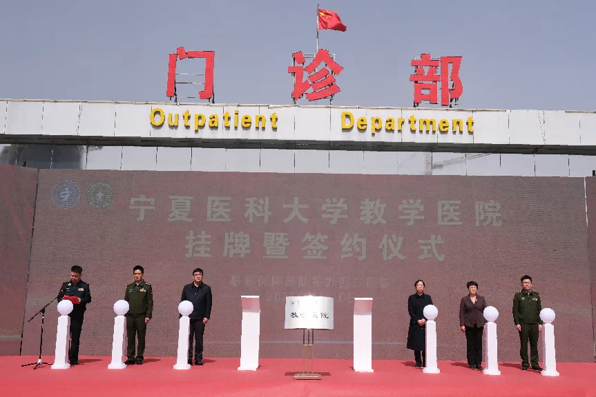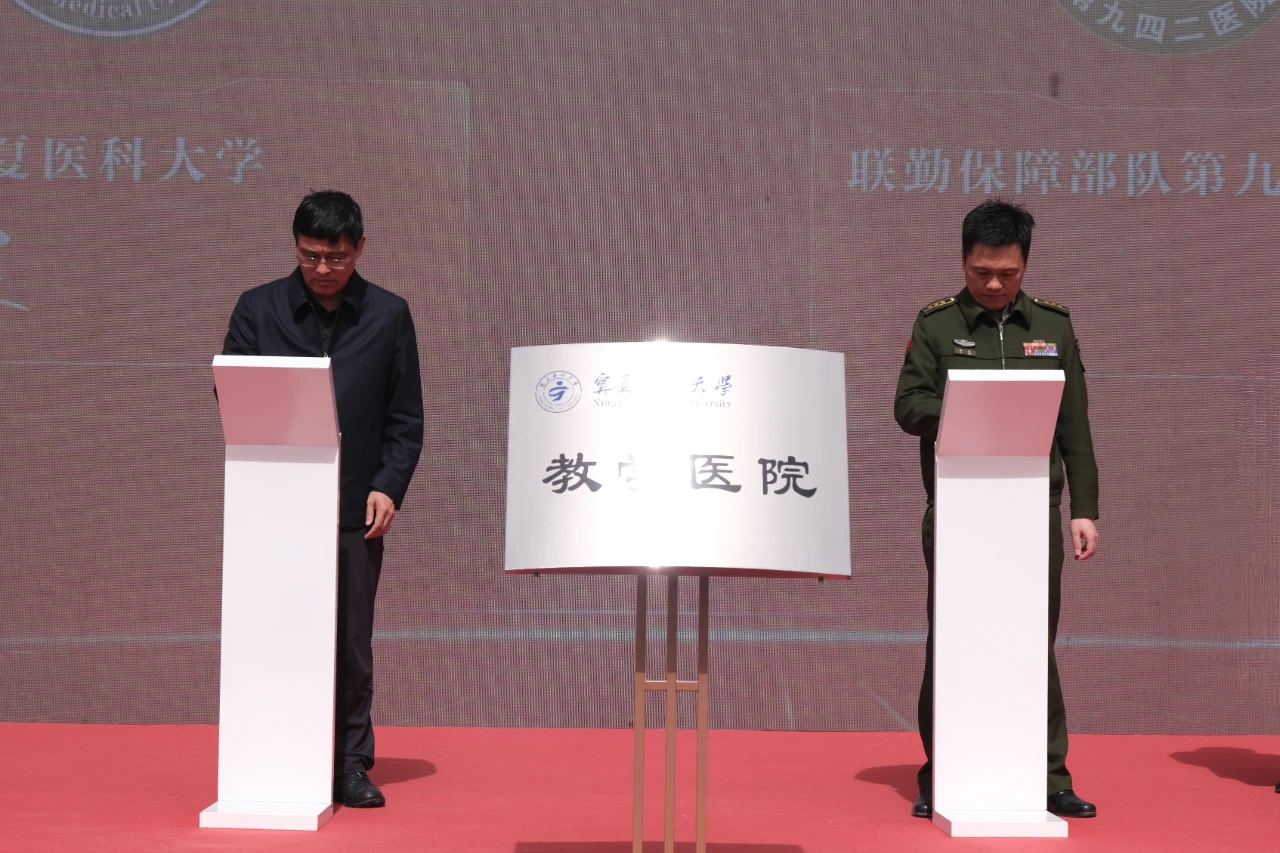 4月10日,学校与联勤保障部队第九四二医院举行教学医院挂牌暨签约仪式。学校党委副书记、校长姜怡邓,自治区卫生健康委副主任杜勇,学校副校长杨怡,相关部门负责人,联勤保障部队第九四二医院院长林通,医院班子成员、医护人员和学生代表参加。