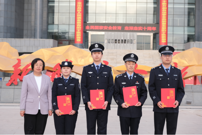 升旗仪式后,邓彦芳为兴庆区公安分局卫敏学及胜利街派出所王凤学、赵海霞、曹瑞四名警官颁发校外法治辅导员聘任证书。医学信息与工程学院2023级王永霞同学以“强化安全意识,守护国家稳定”为题做国旗下的演讲,号召同学们从日常做起,让捍卫国家安全成为青春自觉。基础医学院生物化学与分子生物学系主任、自治区教育工委高校“双带头人”教师党支部书记姚青以“国家安全,医者担当——以法治信仰守护人民健康”为题讲授思政微课,向广大宁医青年提出倡议,希望同学们要筑牢法治底线,严守法律红线;要锁牢专业防线,分级管理实验样本、加密医疗数据;要延伸科普战线,用新媒体传播安全理念,让医学人才的担当成为国家安全最专业的防线。