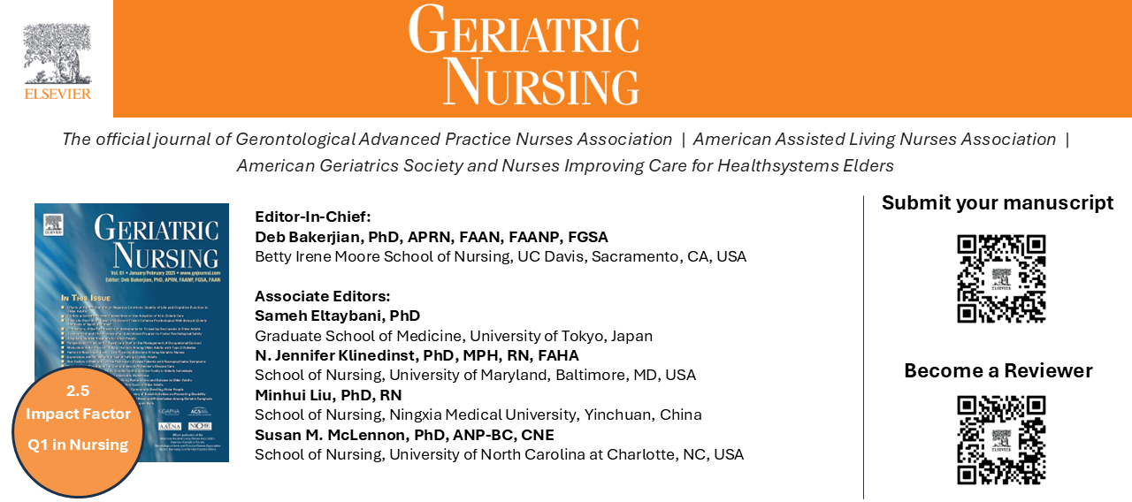据悉,《Geriatric Nursing》是美国老年高级执业护士协会、美国老年医学会等国际重要学术组织的官方期刊,由全球知名学术出版集团ELSEVIER出版,创刊于1980年,是老年护理领域的权威SCI期刊之一。该刊以循证医学为基础,聚焦老年护理领域急慢性疾病管理的最新进展,通过探讨药物管理、预立医疗指示、护理团队建设、患者及照护者教育、感染控制等前沿议题,推动健康老龄化,有效预防或改善疾病状态,提高老年群体的整体生活质量。