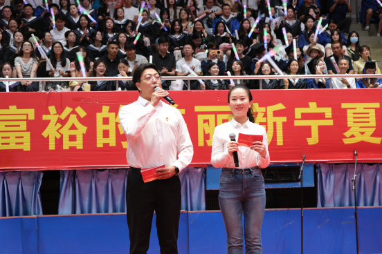 师生合唱环节将气氛推向高潮,大家用歌声传递不舍与祝福,唱出对未来的憧憬与期待。在“宁医的故事——基层奋斗者说” 特别环节,2010级临床医学专业校友、固原市原州区三营中心卫生院副院长扈鹏高走上舞台,目光坚定而饱含热忱,他以自身扎根基层、服务群众的奋斗历程为引,向学弟学妹们深情讲述了那些在偏远地区与患者朝夕相处的日子,那些克服重重困难坚守岗位的时光,无不诉说着个人与国家命运相连的深刻内涵。他鼓励同学们,要勇立时代潮头,把个人奋斗的“小目标”融入国家发展的“大蓝图”,在乡村振兴、基层医疗等祖国最需要的地方,挥洒青春汗水,让青春之花绽放出最绚丽的光彩。