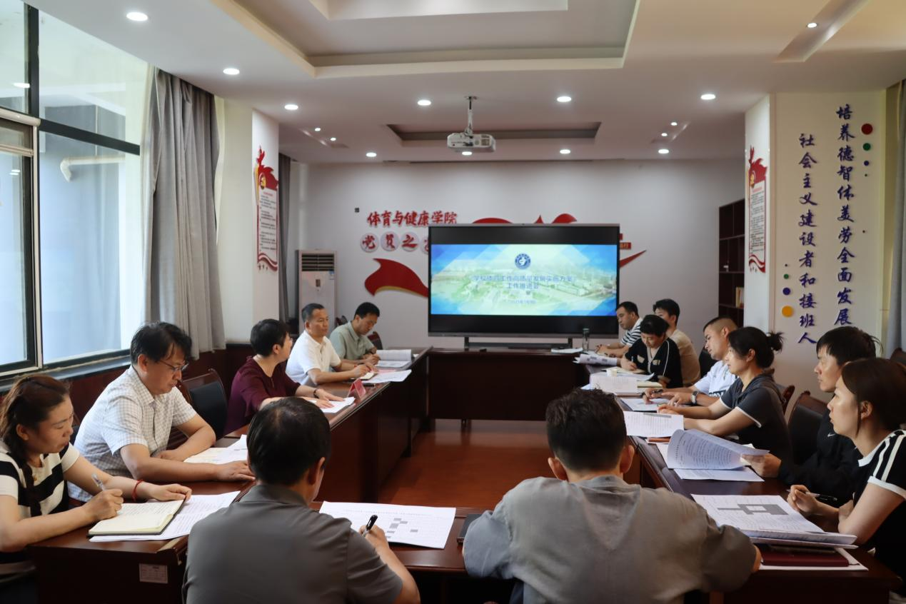 7月9日,体育与健康学院在雁湖校区弘毅体育馆二楼“党员之家”召开《太阳成集团官方网站体育工作高质量发展实施方案》推进会。学校副校长杨怡,学院领导班子成员、中层干部、党支部委员、教师代表参加会议。