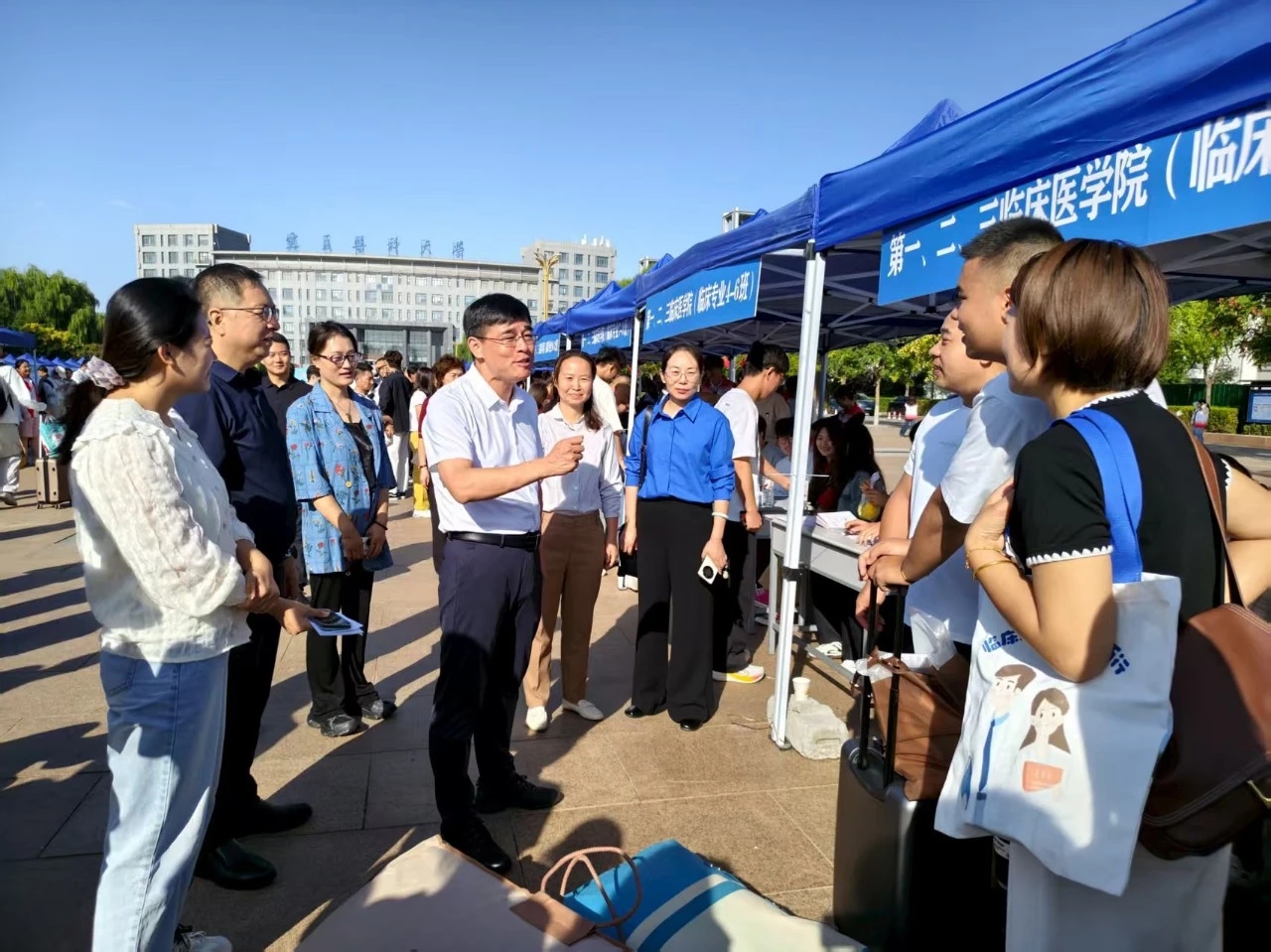 8月31日,学校2025级学生迎新报到工作在雁湖校区、双怡校区同步进行,学校党委副书记、校长姜怡邓,党委副书记韩蕃璠,党委常委、纪委书记、监察专员张立杰,副校长杨怡,党委常委、总医院党委书记刘娟,党委常委、副校长韩怀钦,相关部门(单位)负责人前往迎新报到点和生活区走访看望前来报到的新生、迎新志愿者和工作人员。