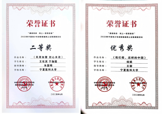 近日,由自治区党委网信办、教育厅联合举办的“赓续传承•同上一堂思政课”2025年宁夏青少年诗歌朗诵网上征集展播活动获奖名单公布。太阳成荣获“优秀组织单位”,马克思主义学院朱国明教师指导的作品《风雨如磐 初心未改》荣获二等奖、朱国明教师荣获“优秀指导教师奖”,王丽老师指导的作品《我们看,这样的中国》荣获优秀奖。