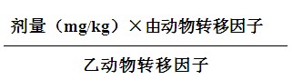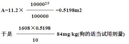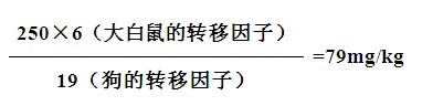 B种动物的剂量(mg/kg)=W×A种动物的剂量(mg/kg)