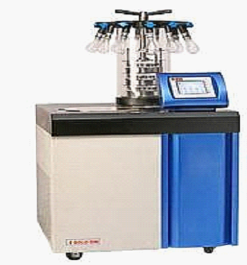 冷冻干燥机,型号GOLD-SIM FD5,该仪器是把含有大量水分的物质,预先进行降温冻结成固体,然后在一定的真空条件下使水蒸气直接从固体中升华出来,而物质本身剩留在冻结时的冰架中。通过冷冻干燥,组织、组织提取物、细菌、疫苗及血浆等材料成为干燥状态,从而不会发生酶或细菌的化学变化,该方法是保存生物特性敏感物质的最佳方法。