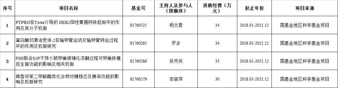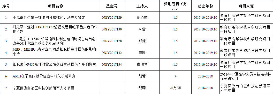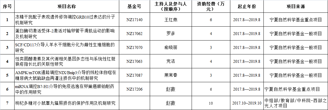 2017年实验室获得的国家自然科学基金