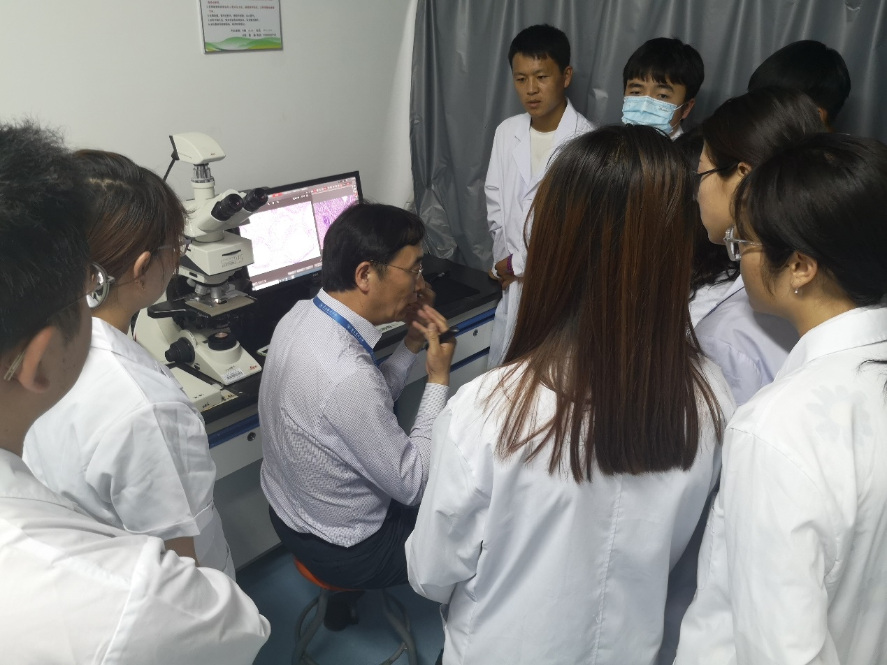 常青副主任向参观学生讲解卵巢病理切片