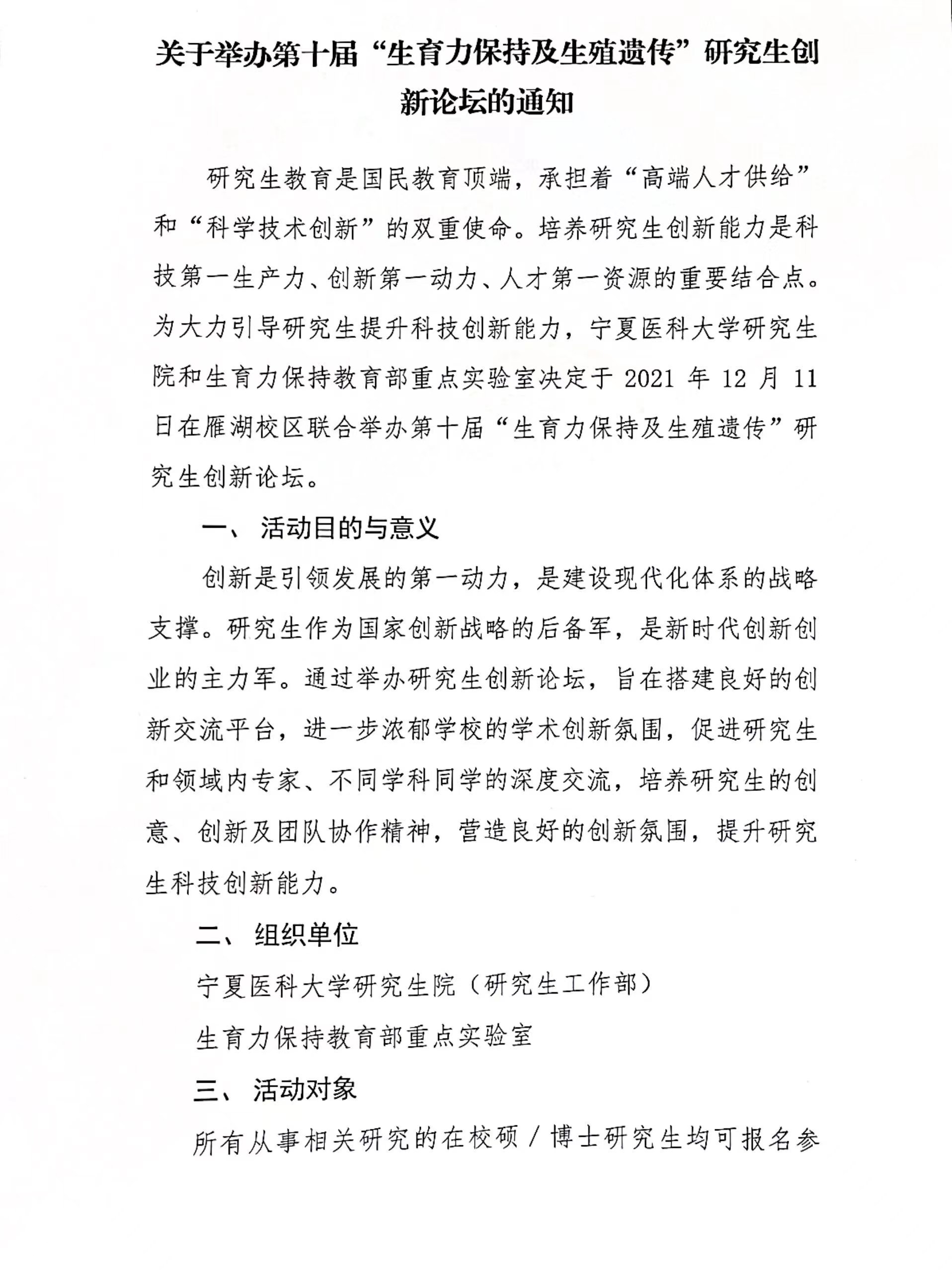 关于举办第十届“生育力保持与生殖遗传”研究生创新论坛的通知