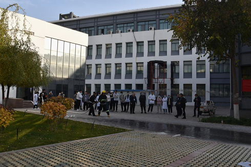 在全员撤离到安全地带后,学校保卫处和学校应急处置分队继续给全体师生演示灭火器、消防水带等消防设备的使用方法,指导师生们进行了实际操作。